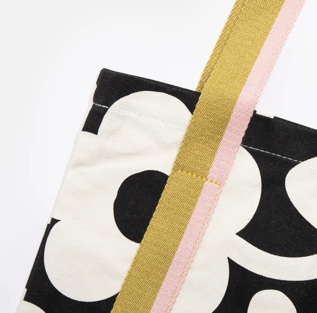 IIdeal für den Alltag – vom kleinen Einkauf bis zum Transport von Laptop und Büchern. Diese handbedruckte Tasche aus Baumwoll-Canvas mit Gurtband verleiht Ihrem Look mit ihrem monochromen Blumendesign einen stilvollen Touch.