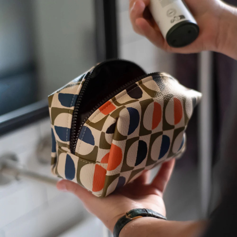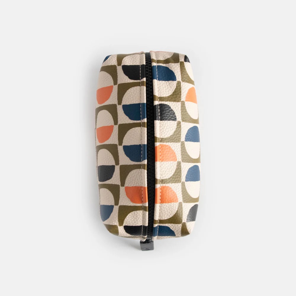 Dieser Kulturbeutel im Retro-Look mit Geo-Print eignet sich perfekt zum Aufbewahren und Organisieren Ihrer Alltagsutensilien zu Hause oder auf Reisen. Die Tasche aus PU-Lederoptik besticht durch ein farbenfrohes geometrisches Kreisdesign, eine Innentasche und ein abwischbares Futter. Teil unserer neuen Gardner-Kollektion.