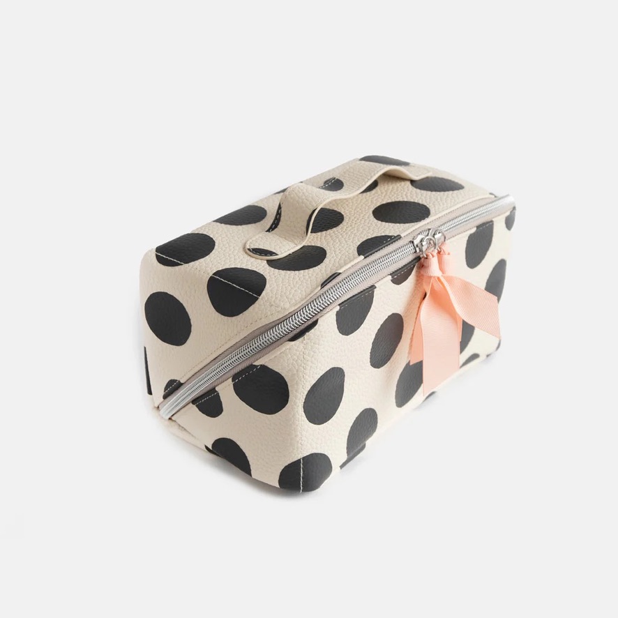 Diese stilvolle, einfarbig gepunktete Kulturtasche eignet sich perfekt zum Aufbewahren und Organisieren Ihrer Alltagsutensilien zu Hause oder auf Reisen. Die Tasche aus PU-Lederoptik verfügt über einen diagonalen Reißverschluss, der sich für einfachen Zugriff komplett flach öffnen lässt. Abwischbares Futter und eine Innentasche mit Reißverschluss runden das Design ab. Teil unserer neuen Big Spot-Kollektion.