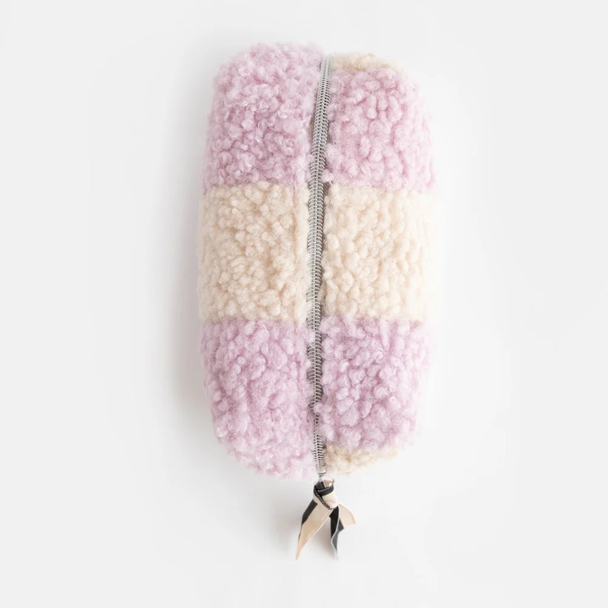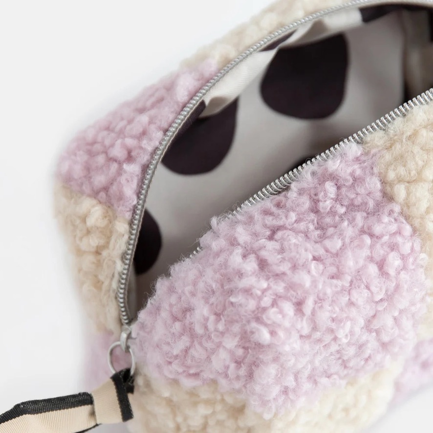 Diese hübsche Kosmetiktasche hat die perfekte Größe für all Ihre Beauty-Utensilien. Sie besteht aus superweichem Borg-Stoff in flieder- und cremefarbenem Karomuster und verfügt über ein abwischbares Futter mit Punktemuster, eine Innentasche und einen kontrastierenden Ripsband-Reißverschluss. Teil unserer Multi-Check-Kollektion.