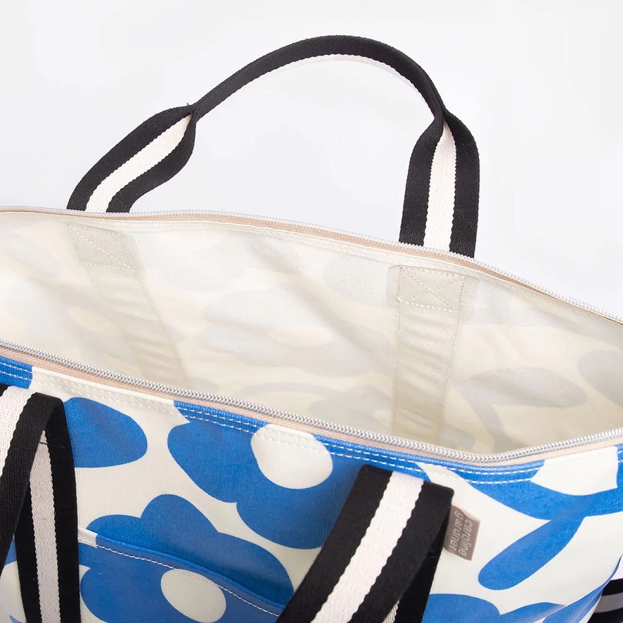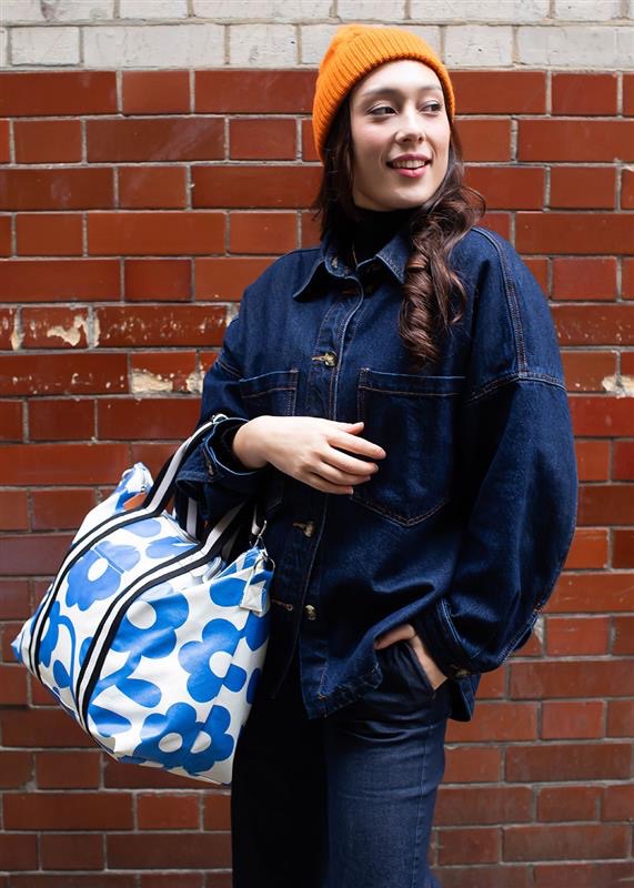 Verleihen Sie Ihrem Gepäck mit unserer neuen Wochenendtasche aus beschichtetem Baumwoll-Canvas einen stilvollen Touch. Die Tasche ist handbedruckt mit unserem neuen blauen Blumenmotiv und verfügt über Tragegriffe und einen abnehmbaren, verstellbaren Schultergurt. Ergänzen Sie auch das tolle Make Up Täschchen im selben Muster dazu.