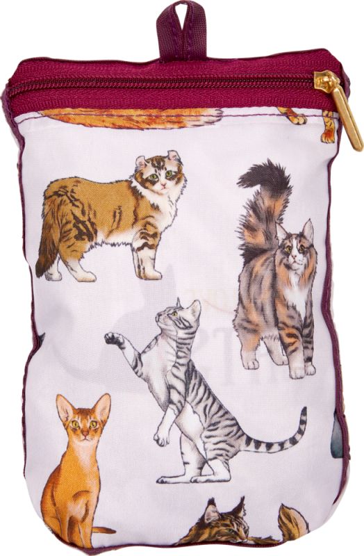 Ein Leben ohne Katze ist möglich ... aber sinnlos! Besonderer Faltshopper mit einigen der beliebtesten Katzenrassen, nachhaltig hergestellt aus recyceltem Polyester. Der Einkaufsbeutel lässt sich klein zusammenfalten, im angenähten Vordertäschchen verstauen und passt so in jede Handtasche. Ideal für unterwegs. So wird auf den ersten Blick klar: I love cats!