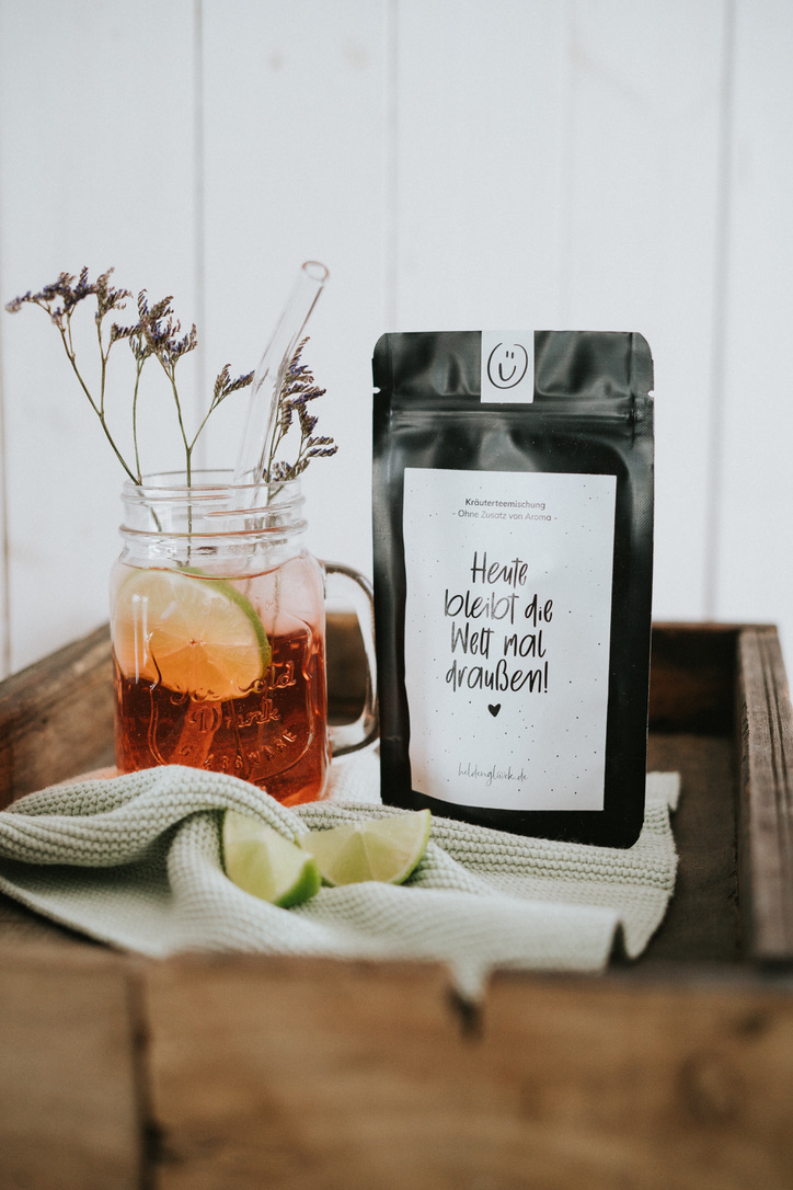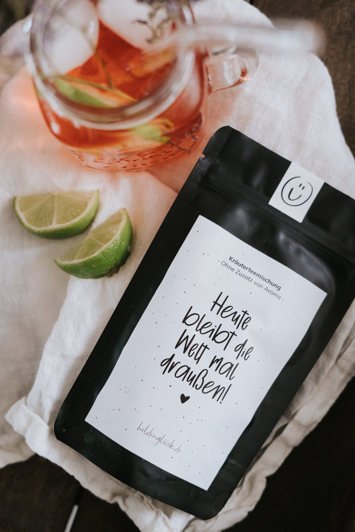 Welt aus, Fühlen an: Gemeinsamkeit, Geborgenheit, Gemütlichkeit. Dieser Tee hilft dabei, abzuschalten und anzukommen. In der eigenen Welt, im eigenen Rhythmus. Weil das Draußen manchmal einfach zu viel ist, und das Drinnen dann hilft, wieder Kraft zu tanken. Mit diesem Kräutertee kannst Du Dich Schluck für Schluck auf positive Energie freuen.