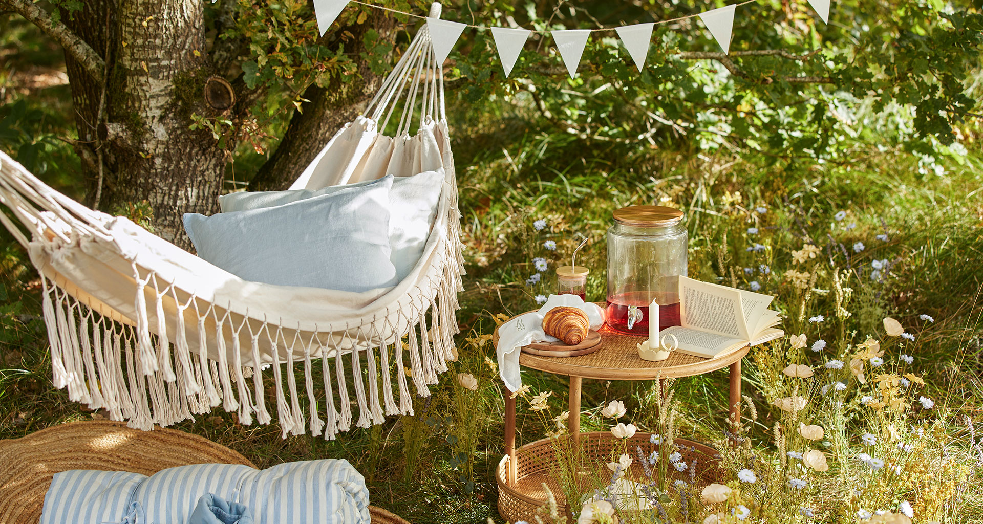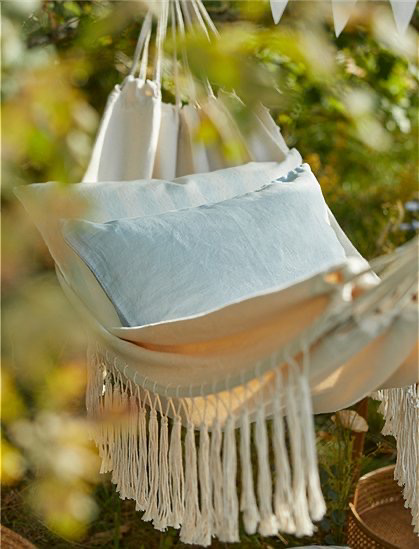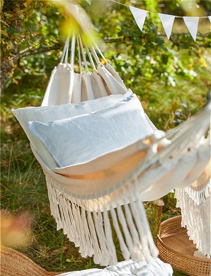 Sanft in der Donne hin und her schaukeln und relaxen… das ist mit dieser tollen Stoff Hängematte im Bohostyle möglich.