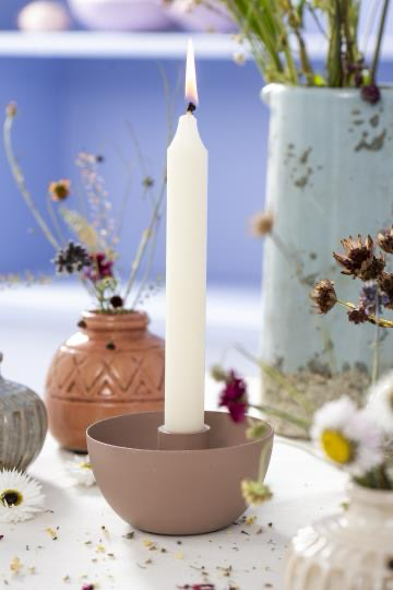 Wunderschöne Kerzenhalter, für Stabkerzen, in Form einer kleinen Schale, die man hübsch dekorieren kann. Z.b. mit Muscheln oder Sand. Es gibt verschiedene Farben bei uns im Shop.