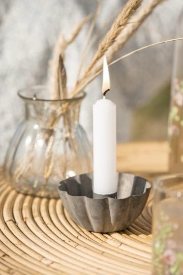 Der hübsche kleine Kerzenhalter hat eine gewellte Kante. Passende Stabkerzen finden Sie auch bei uns im Shop.