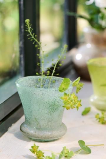 Elegante türkise Vase aus mundgeblasenem Glas, bei der sich das handwerkliche können in den schönen runden Kanten widerspiegelt. Sie können Sie entweder alleine oder in Kombination mit den anderen schönen Vasen aus unserem Shop dekorieren.