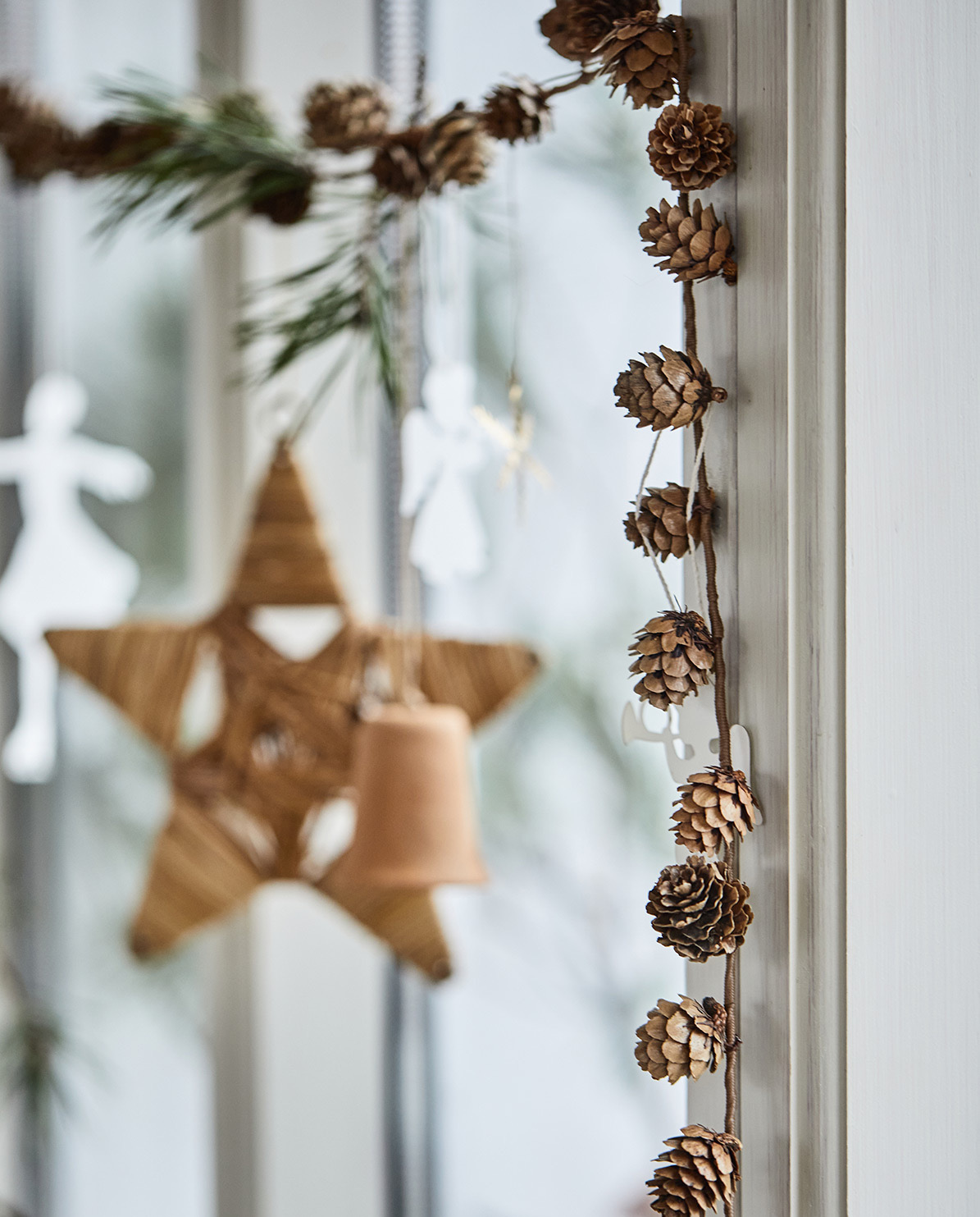 Die wunderschöne Girlande mit kleinen Zapfen passt wunderbar an die Tür oder ins Fenster oder auf den gedeckten Tisch.