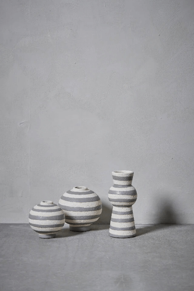 Die Aniella Vase ist einen langen Herstellungsprozess durchlaufen. So kann sichergestellt werden, dass sie den Lene Bjerre-Standards entspricht. Die Vase wird in eine transparente Glasur getaucht und dann werden die Streifen von erfahrenen Kunsthandwerkern handbemalt.
