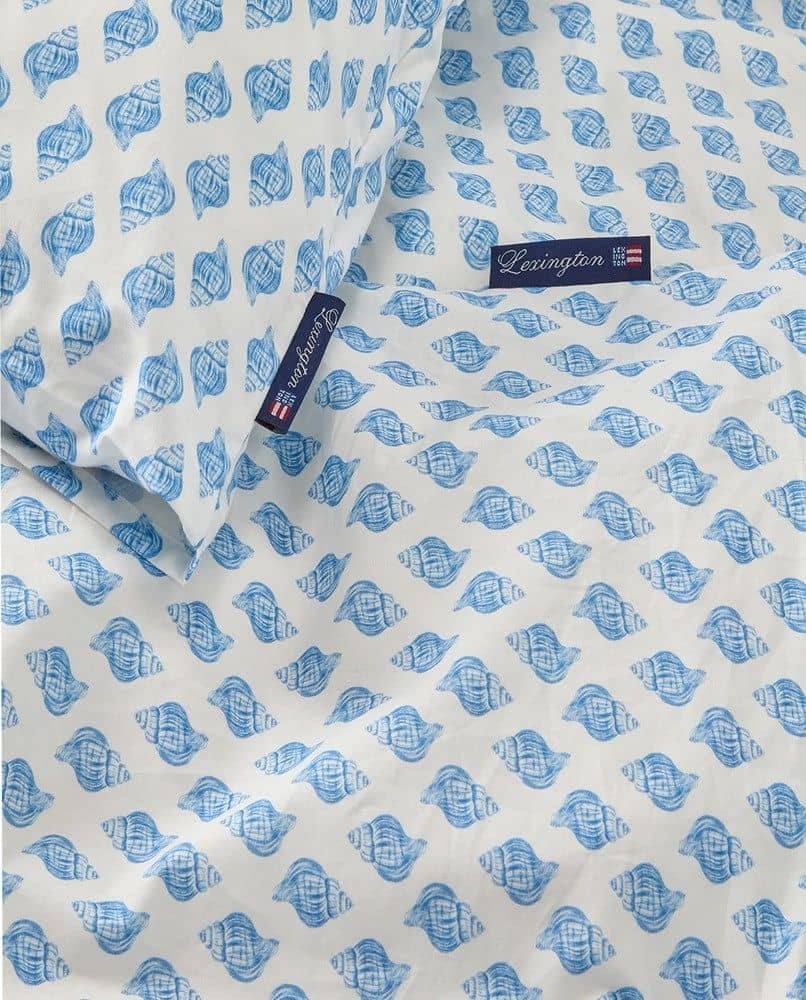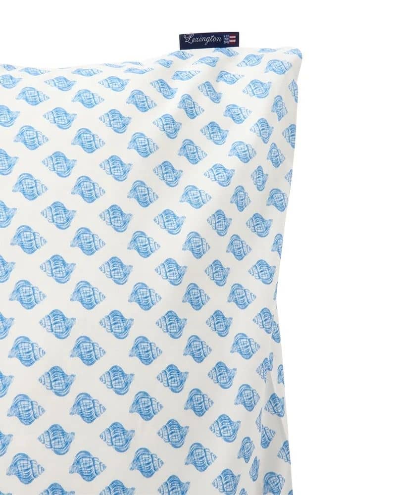 Produktinformationen "Lexington Bettwäsche Set aus Baumwollpopeline mit Muschelmuster in weiß/blau 135 x 200 cm / 80 x 80 cm"