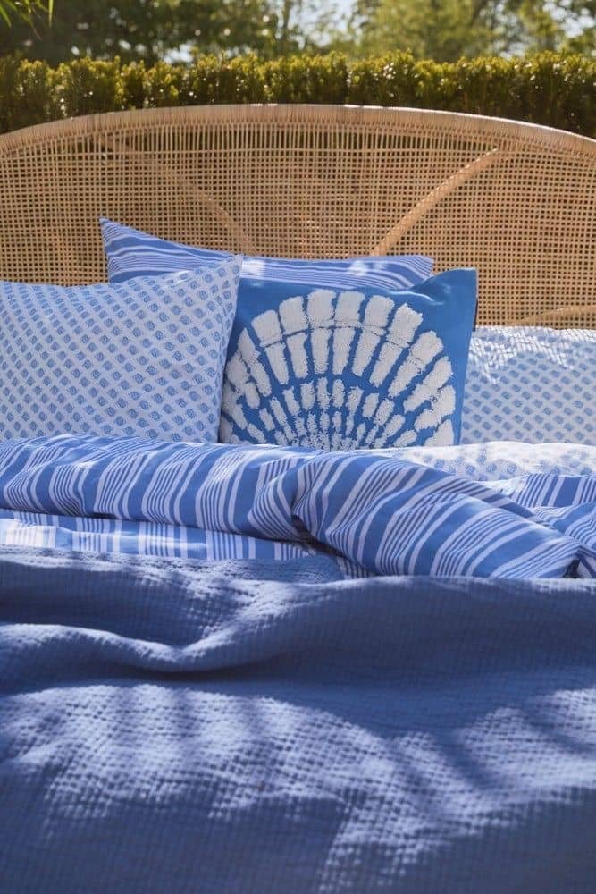 Lexington Bettwäsche Set aus Baumwollpopeline mit Muschelmuster in weiß/blau 135 x 200 cm / 80 x 80 cm