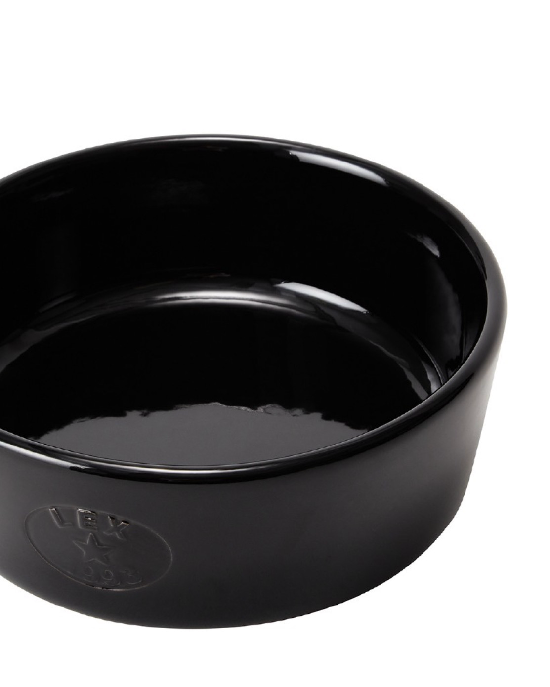 Halten Sie Ihren pelzigen Freund glücklich und gut ernährt, ohne den Stil Ihres Hauses zu beeinträchtigen. Sowohl funktional als auch dekorativ, unsere Terrakotta-Haustierschale ist 100% lebensmittelecht. Handgefertigt und in einer eleganten schwarzen Glasur verarbeitet, haben wir ein gestempeltes Lexington-Logo hinzugefügt, um den Look zu vervollständigen. Kaufen Sie ein zweites für Wasser und geben Sie Ihrem Haustier einen stilvollen und gut koordinierten Essbereich. Ein gut ernährtes Haustier ist ein glückliches Haustier, und ein glückliches Haustier bedeutet ein glückliches Sie. Es gibt zwei Größen!