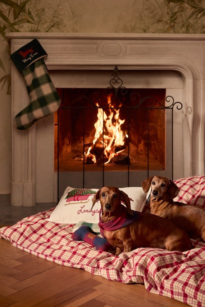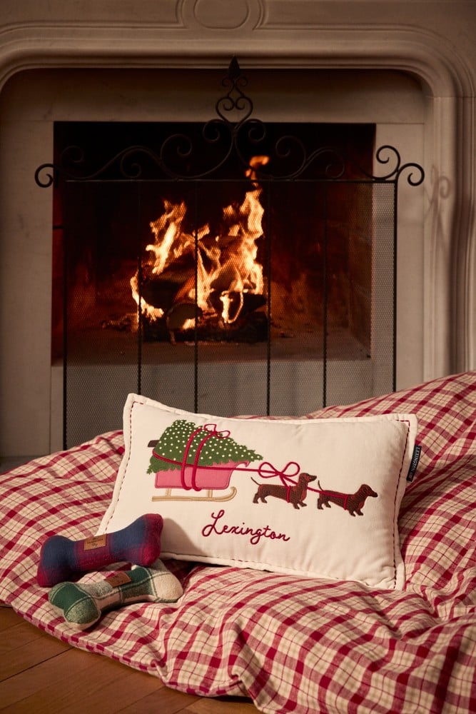 Lexington Holiday Bio Baumwollsamt Kissen Hundeschlitten 30 x 50 cm
