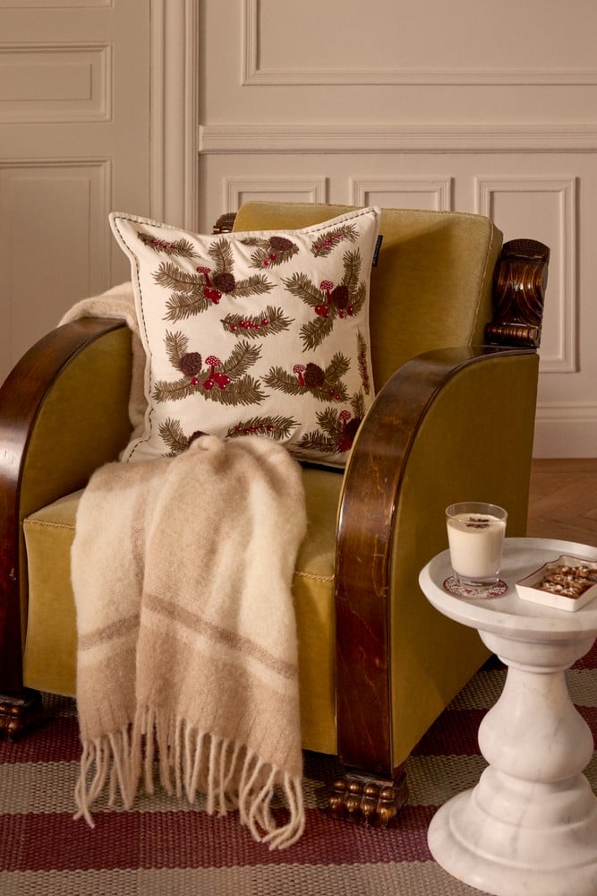 Lexington Holiday Bio Baumwollsamt Kissenbezug Tannenzweige 50 x 50 cm