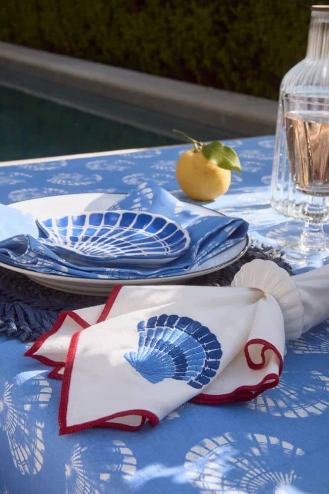 • Serviette aus weichem Baumwollleinen mit exklusiver Muschel-Stickerei auf einer Seite und gesticktem Lexington-Text auf der anderen Seite
