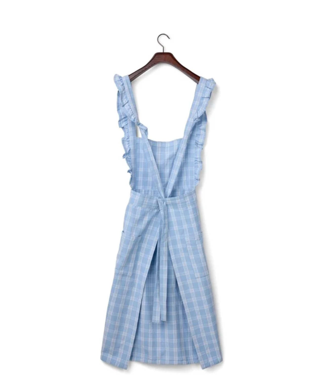 Einfach bezaubernd. Die wunderschöne Schürze hat Rüschen und ist himmelblau, weiß kariert. So macht doch das Backen und Kochen richtig Spaß.