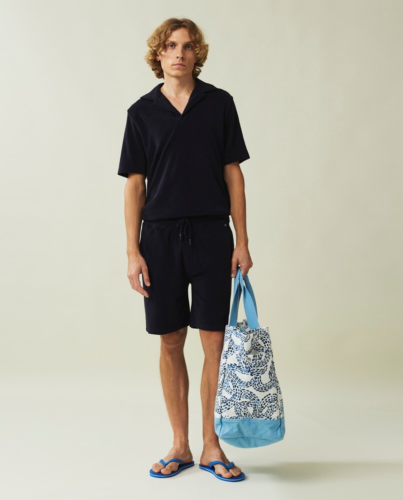 Die super bequemen, stylischen Shorts bringen Ihre Garderobe auf ein neues Level. Ideal für den lässigen Look im Urlaub, im Sommer oder auch Zuhause. Sie ist aus kühler, softer 100% Bio-Baumwolle gefertigt. Der elastische Kordelzug im Bund sorgt für höchsten Tragekomfort und eine optimale Passform. Komplettiert wird das Ganze durch Leistentaschen auf der Vorderseite und eine einzelne Tasche auf der Rückseite. Die Hose wird im Handumdrehen zu Ihrem treuen Verbündeten, der Sie an warmen Tagen angenehm kühl hält. Zusammen mit unseren Frottee-Polo Raphael erschaffen Sie einen 100 % stimmigen Sommerlook.