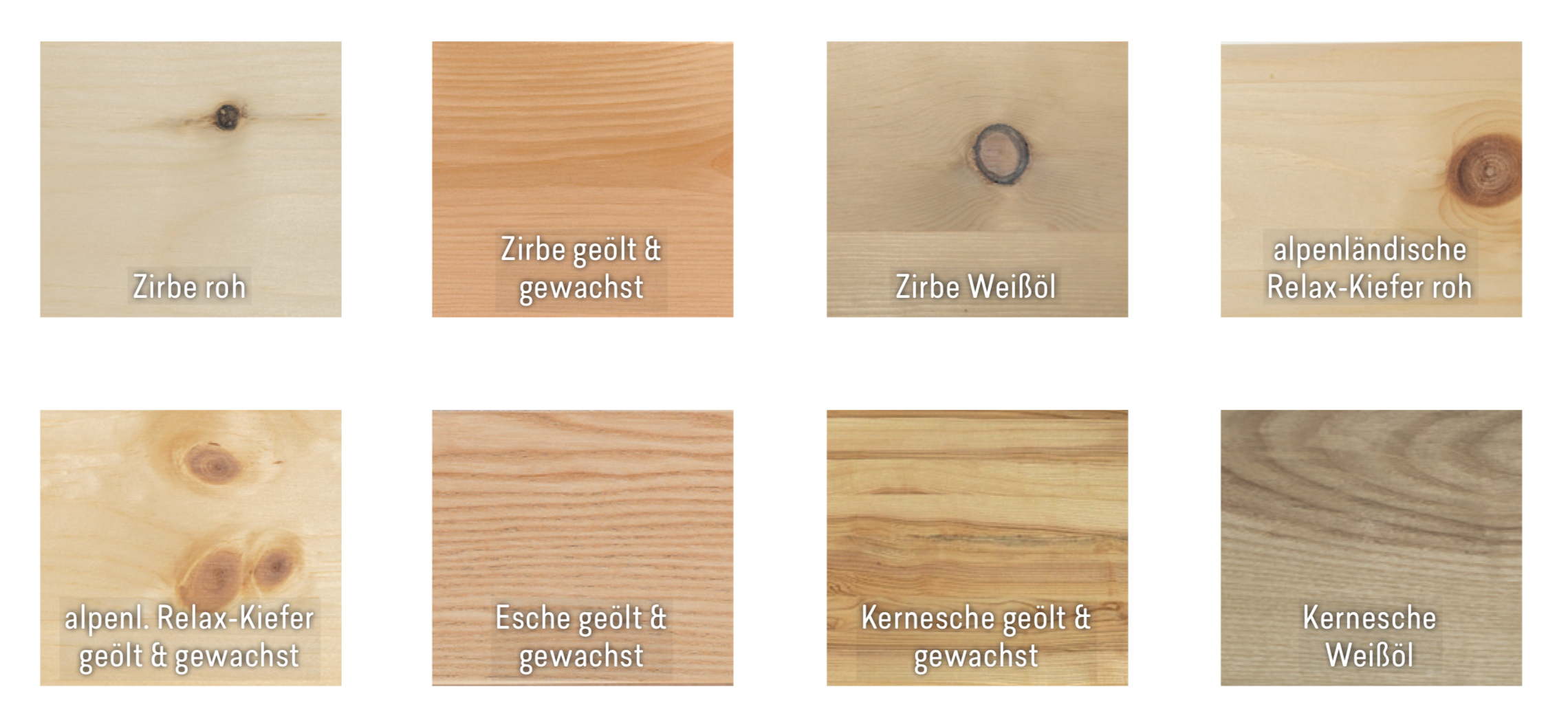 | Holzart: | Alpenländische Kiefer, Kernbuche, Wildeiche, Zirbe |