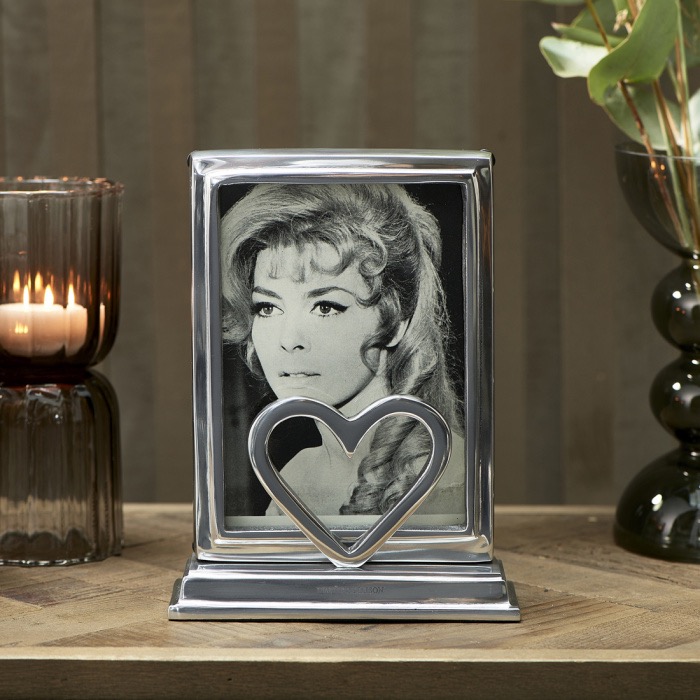 Der RM Heart Fotorahmen ist ein klassischer Fotorahmen mit schönen Details. Der rechteckige, stehende Rahmen ist aus silberfarbenem Aluminium gefertigt. Der Rahmen steht in einer Halterung. Auf der Halterung des Fotorahmens befindet sich ein Aluminiumherz. Ideal für ein 13 x 18 cm großes Foto von Ihrem Liebsten oder Ihrer Liebsten.