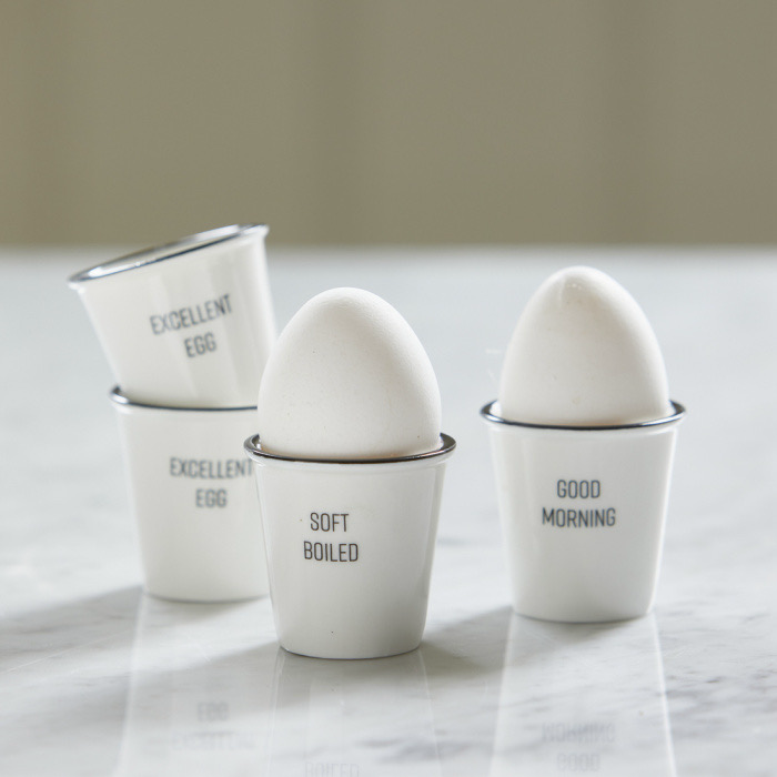 Zu einem gemütlichen Frühstück gehören Eier in einem Eierbecher wie den RM Eierhaltern. Hergestellt aus schönem Porzellan mit einem anderen Text auf jedem Eierbecher. Diese Ergänzungen dürfen auf Ihrem Frühstückstisch nicht fehlen.