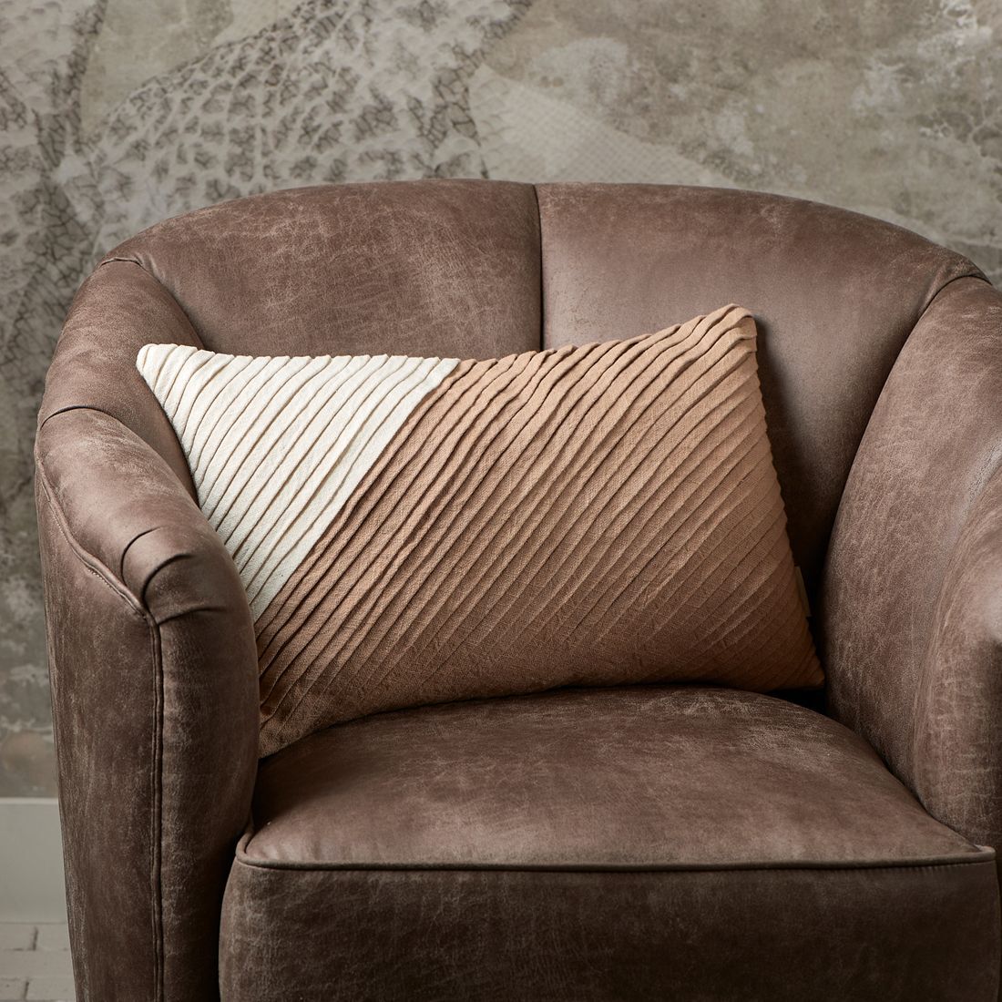 Der Rum Cay Plead Pillow Cover ist ein rechteckiger Kissenbezug in zwei Farben für ein Innenkissen von 50 x 30 Zentimetern. Der schicke und coole Bezug ist aus Baumwolle gefertigt und hat eine unifarbene Rückseite. Auf der Vorderseite ist der Stoff in diagonalen Streifen gerafft.