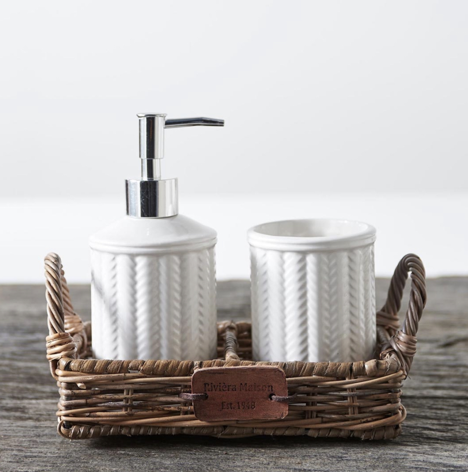 Das Rustic Rattan "Soap Tray" eignet sich nicht nur für Seifenspender und Becher. Auch für unser beliebtes Milch und Zuckerset ist es ideal geeignet. Ein Hingucker auf jedem gedeckten Tisch!