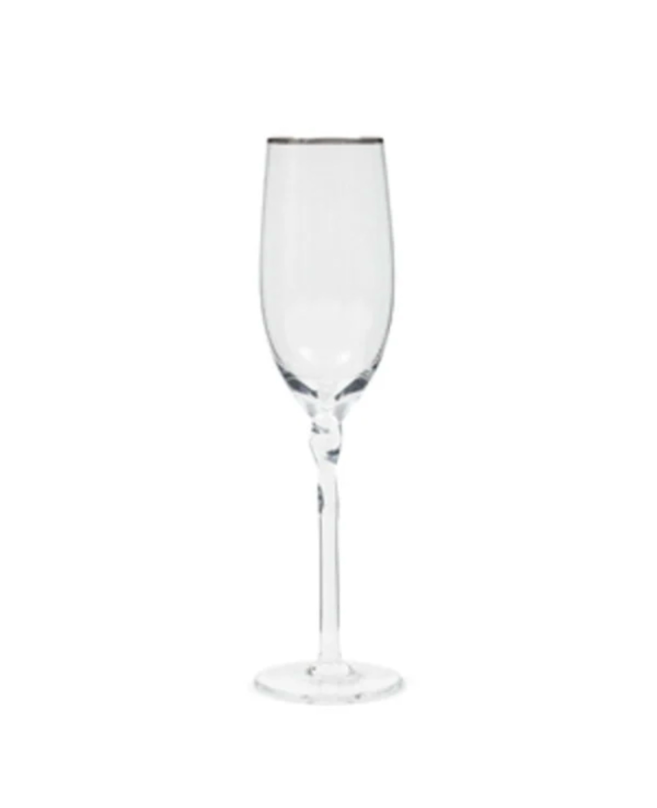 Cheers! Ein wunderschönes Champagnerglas mit einem feinen, silberfarbenen Rand.