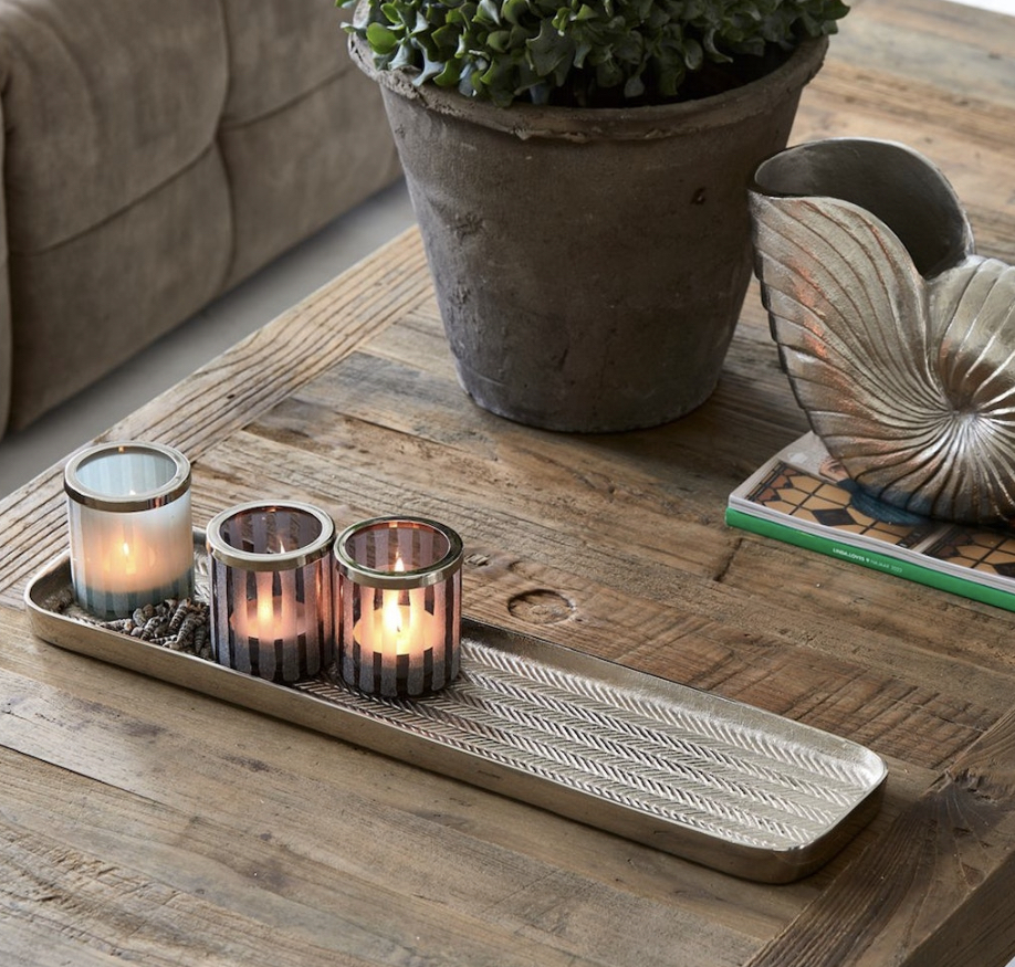 Das wunderbare Tablett gibt es in zwei verschiedenen Größen. Ideal als Dekoration oder für zum servieren von Gläsern und Tassen.