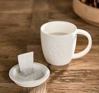 Klassisch mit einem netten Detail. Die neue Tasse von Rivièra Maison ist aus weißem Porzellan. Ein Deckel aus demselben Material rundet das Ganze ab. So kann man zum Beispiel seinen Teebeutel darauf ablegen.
