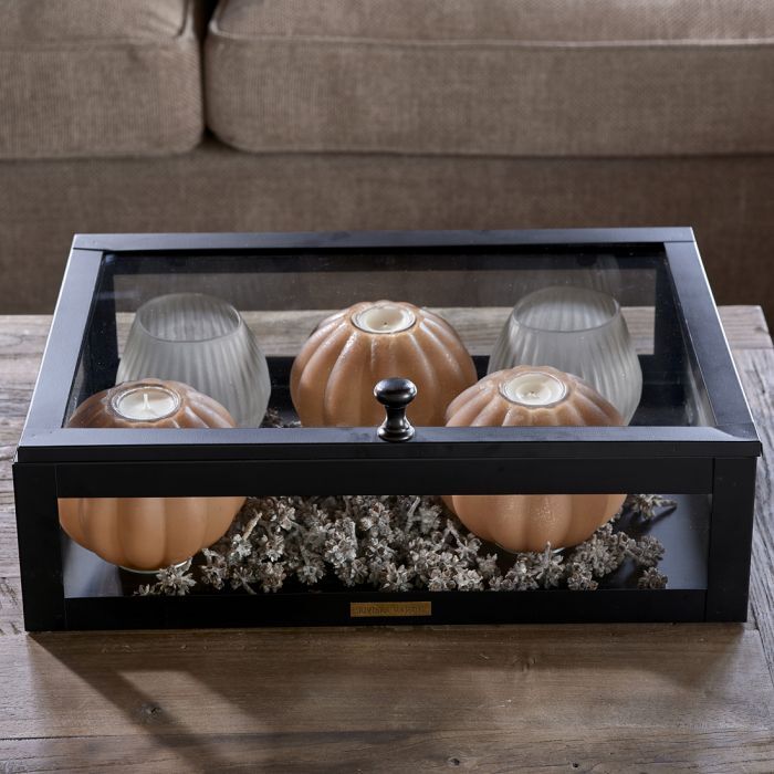 Ein kleines Windlicht in Form eines Mini Kürbisses! Perfekt für den Herbst in terracotta.