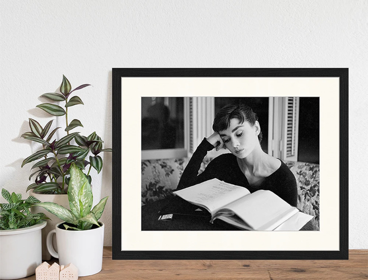 Produktinformationen "Wandbild Audrey Hepburn Reading 30x40cm"