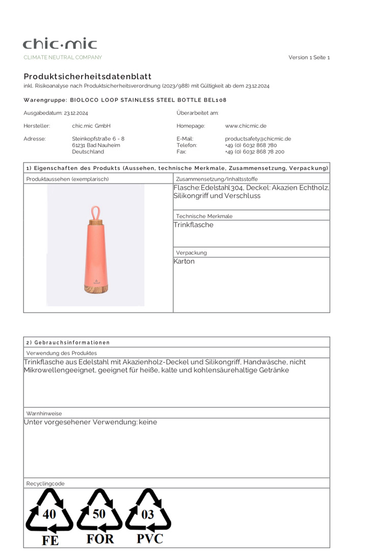 Produktinformationen "chic.mic bioloco loop Thermoflasche koralle"