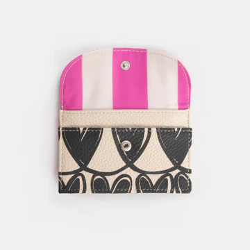 Verleihen Sie Ihrem saisonalen Look mit unserem neuen Kartenetui „Looped Hearts“ einen Hauch von Liebe. Das Etui aus PU in Lederoptik mit kontrastierendem, pinkfarbenem Streifenfutter bietet drei Kartenfächer in kontrastierendem Pink, ein Münzfach mit Reißverschluss und eine praktische Vordertasche mit Druckknopfverschluss. Teil unserer „Looped Hearts“-Kollektion.