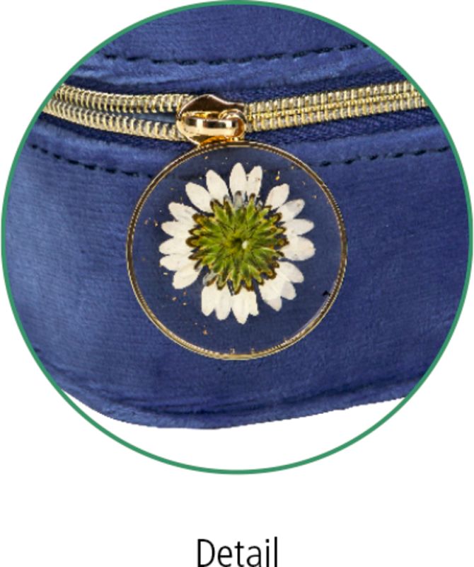 Das Schmuckkästchen Stickerei von Die Spiegelburg ist ein hübsches Versteck für kleine Kostbarkeiten. Der zarte Stoffdeckel ist mit feinen Blütenmotiven bestickt und macht das Kästchen zu einem echten Hingucker – die beiden Blümchen-Anhänger am Reißverschluss setzen dabei einen verspielten Akzent. Innen lassen sich Ringe, Ketten und andere Lieblingsstücke ordentlich und sicher aufbewahren. Mit seinen ca. 14 x 5 x 8 cm passt es mühelos in jede Tasche und bringt ein Stück florale Poesie in den Alltag. Maße/ Gewicht/ Inhalt: ca. 14 x 5 x 8 cm