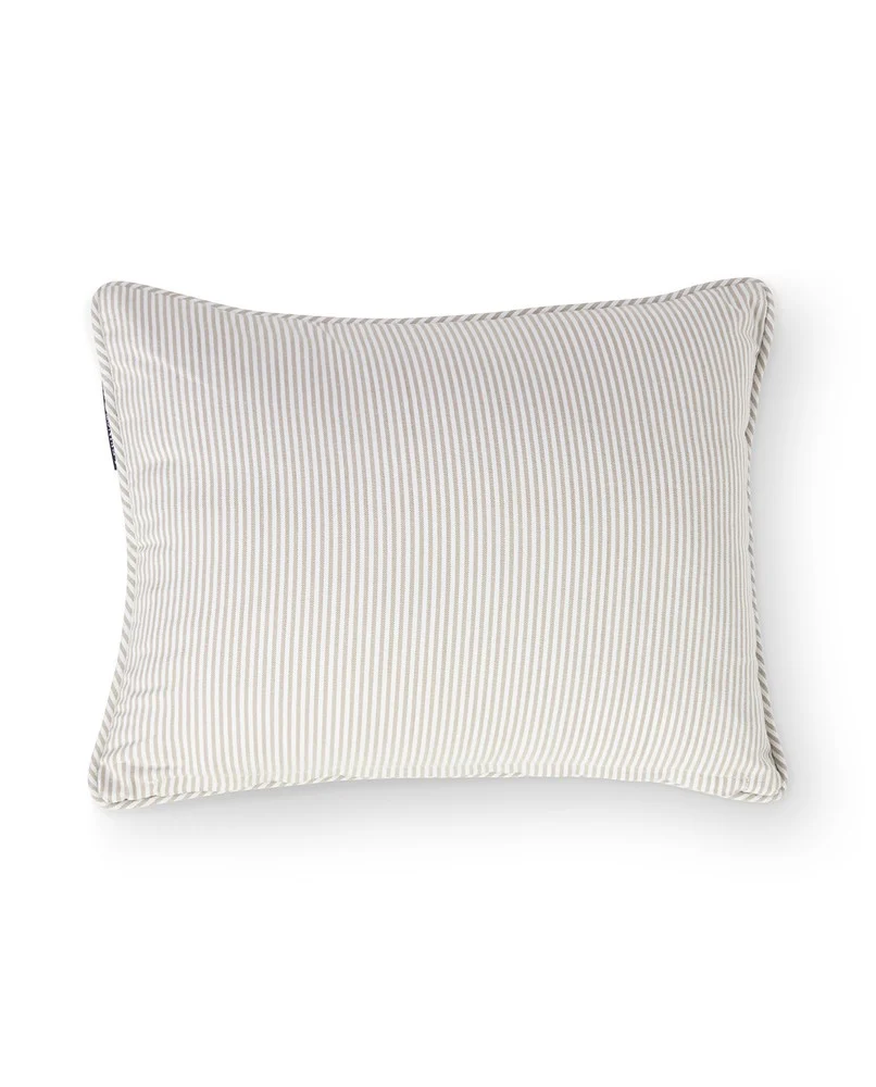 Das klassische Lexington Kissen in Beige und Weiß mit Streifen bringt zeitlose Eleganz in Ihr Zuhause mit seiner weichen Bio-Baumwoll-Oxford-Webart und dem originalen garngefärbten Streifendesign. Das bestickte Logo auf der Vorderseite und die feine Paspel aus dem gleichen Stoff verleihen raffinierte Details, während der versteckte farblich abgestimmte Reißverschluss für ein nahtloses Aussehen sorgt. Hergestellt in einem zertifizierten Green Factory Building und Oeko-Tex zertifiziert, spiegelt dieses Kissen unser Engagement für Nachhaltigkeit und Qualität wider.