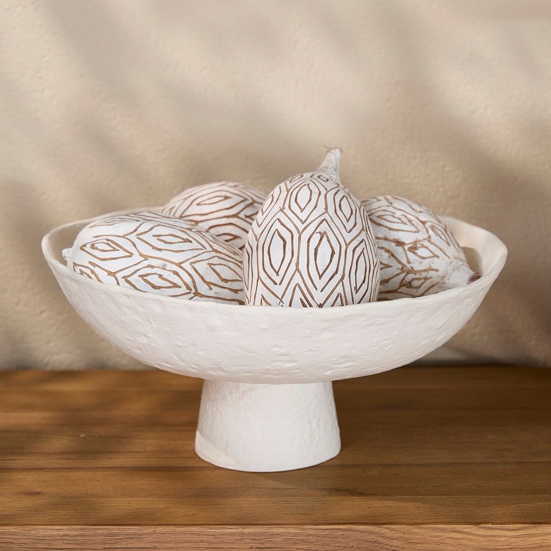 Die große Schale aus der brandneuen Rivièra Maison Kollektion ist aus weißem Metall gefertigt. Das Metall ist so bearbeitet, dass es uneben aussieht, was der Schale einen ganz besonderen Look verleiht. Aus dieser Serie gibt es auch noch eine kleine Dekorationsschale und zwei Tabletts. Die Schalen lassen sich wunderbar für Obst oder Gemüse verwenden oder ganz klassisch zum dekorieren.