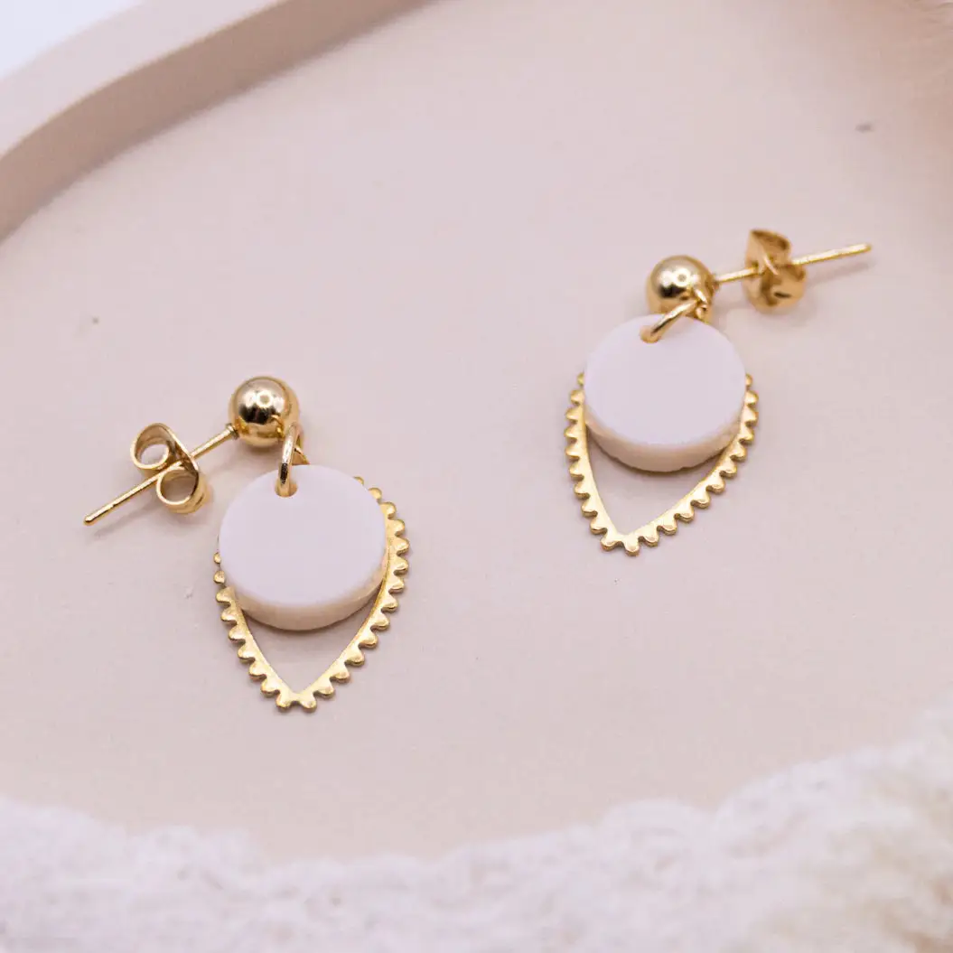 Produktinformationen "Tilda & Theo Ohrringe Blütenanhänger beiges Acryl und Messing"